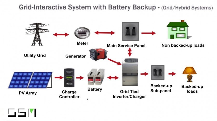 Cons of this system are that they cost more than basic grid-tied systems and are less efficient. There are also more components. The addition of the batteries also requires a charge controller to protect them. There must also be a sub panel that contains the important loads that you want to be backed up.