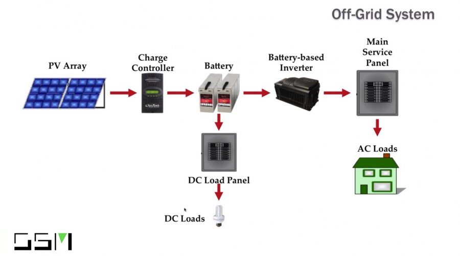 Because the system is your only source of power, many off-grid systems contain multiple charging sources such as solar, wind and generator. You have to consider weather and year round conditions when designing the system. If your solar panels are covered in snow, you need to have another way to keep your batteries charged up. You also will most likely want to have a back-up generator just in case your renewable sources are not enough at times to keep the batteries charged.